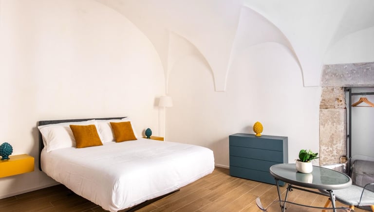 The apartment located in the historic center of Palermo offers a unique experience, combining elegance and comfort. Tastefully furnished with attention to detail, this space reflects the refined style that distinguishes the beauty of the city. The fine finishes, together with high-quality furniture, create a welcoming and sophisticated atmosphere. Guests can enjoy the picturesque view of the historic streets, immersed in the culture and history of Palermo. The central location allows you to easily explore the artistic and gastronomic wonders of the area, making this apartment a great choice for those who want to immerse themselves in the vibrant life of Palermo. With the ideal balance between elegance and functionality, this space is perfect for an unforgettable stay. Located just 60 meters from the majestic Palermo Cathedral, this apartment in the Albergheria district offers: