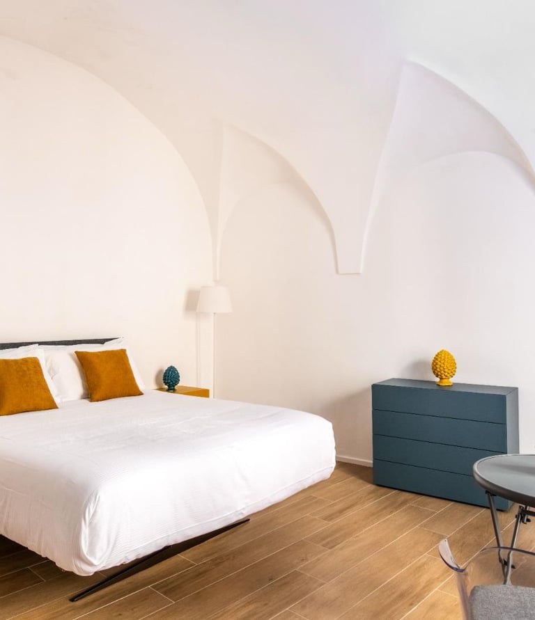 In the heart of Capo di Palermo, this elegant and comfortable apartment offers a delicious breakfast to start the day with energy. Its privileged location allows you to immediately immerse yourself in the rich culture and history of the city, with the famous Teatro Massimo and lively markets just steps away. Guests can enjoy typical dishes in the nearby restaurants, living an authentic Palermo culinary experience. The interior of the apartment is cared for in the smallest details, creating a welcoming and refined atmosphere, perfect for relaxing after a day of exploration. From here, it is easy to visit the artistic and architectural wonders of the city, including the majestic Palazzo dei Normanni and the historic cathedral, making the stay an unforgettable experience in the heart of Sicily.